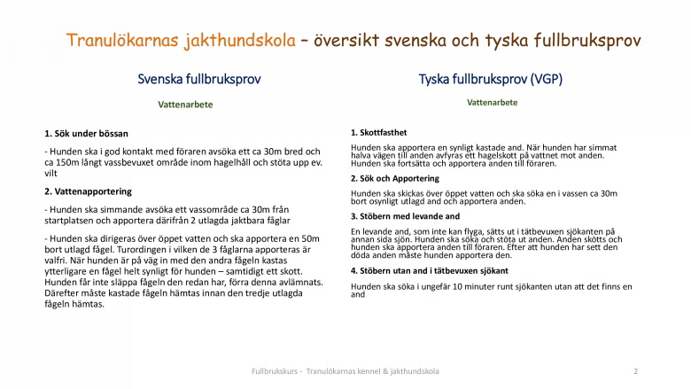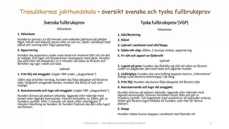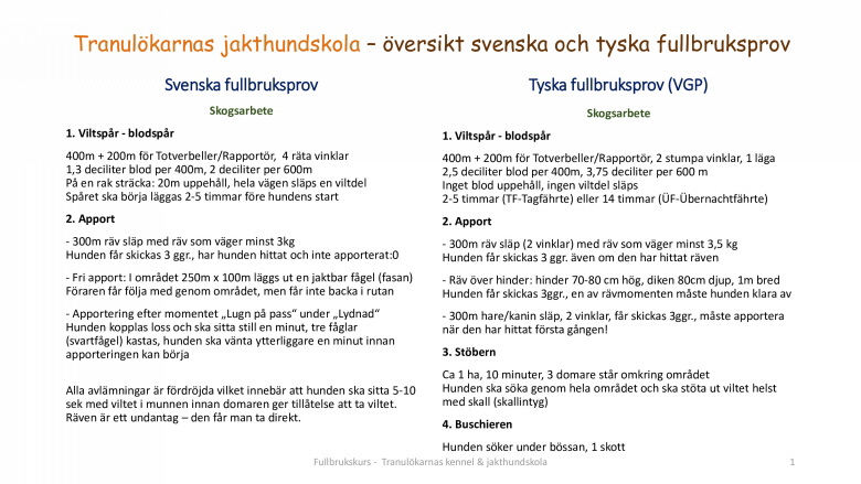 Mycket jaktnära träning, många HZP- och VGP-moment och svenska fullbruksprovmoment