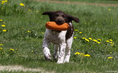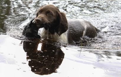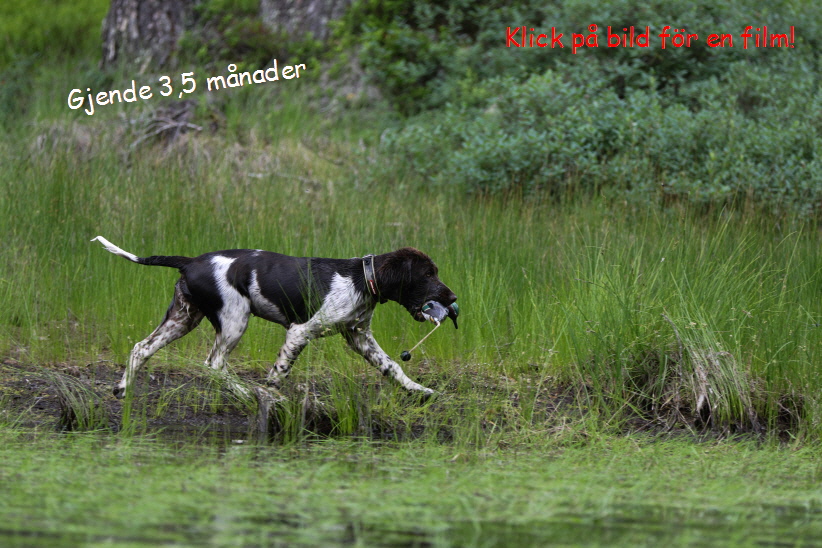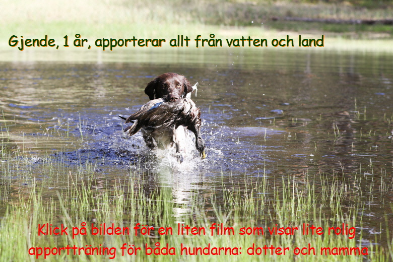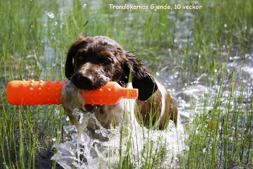 I 11 veckors ålder apporterar Gjende ALLT på land och i vatten: olika dummys, vilt och alla grejer jag "tappar".