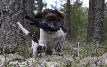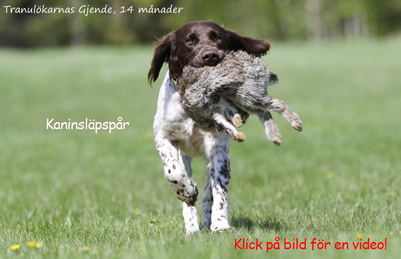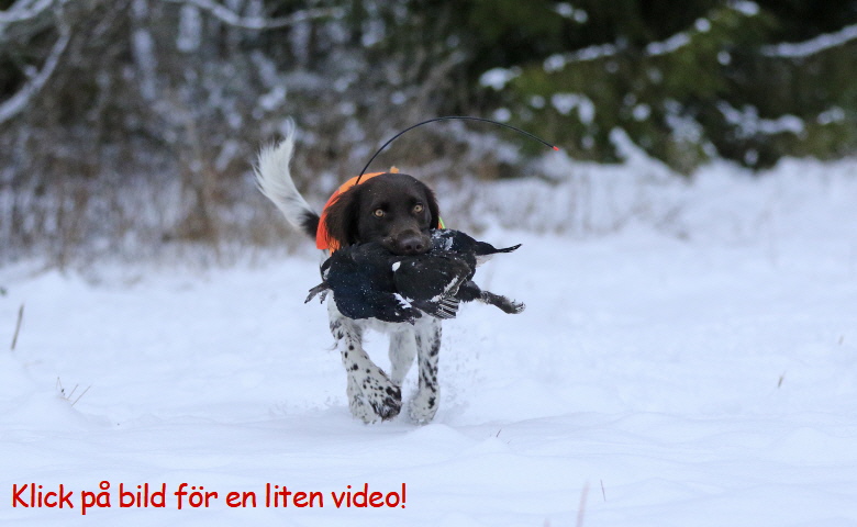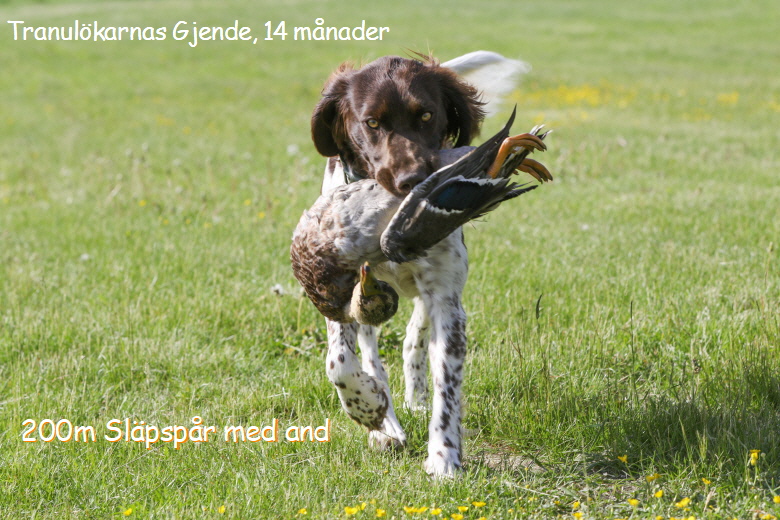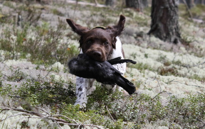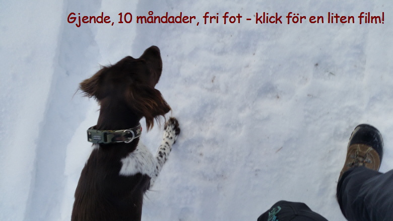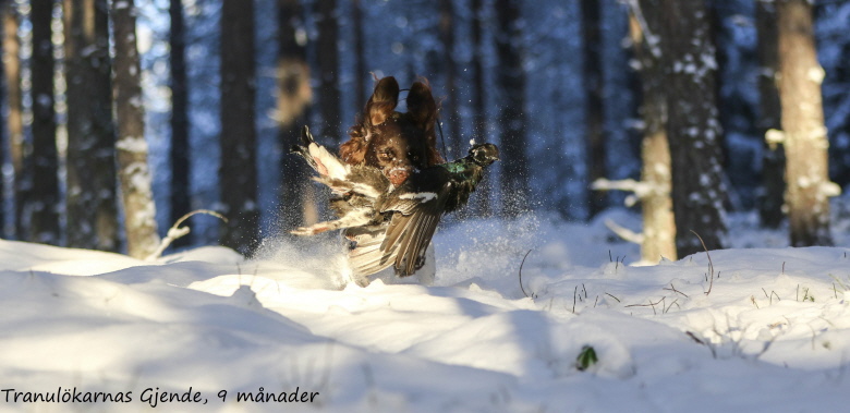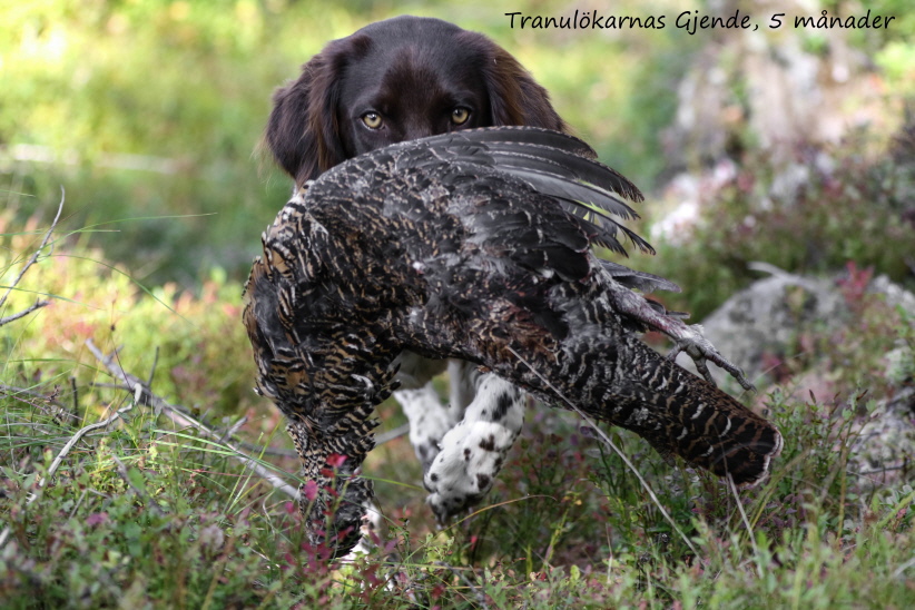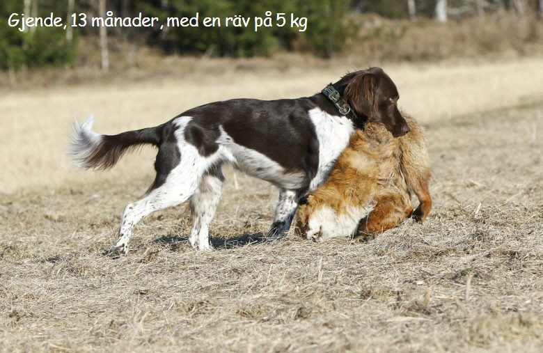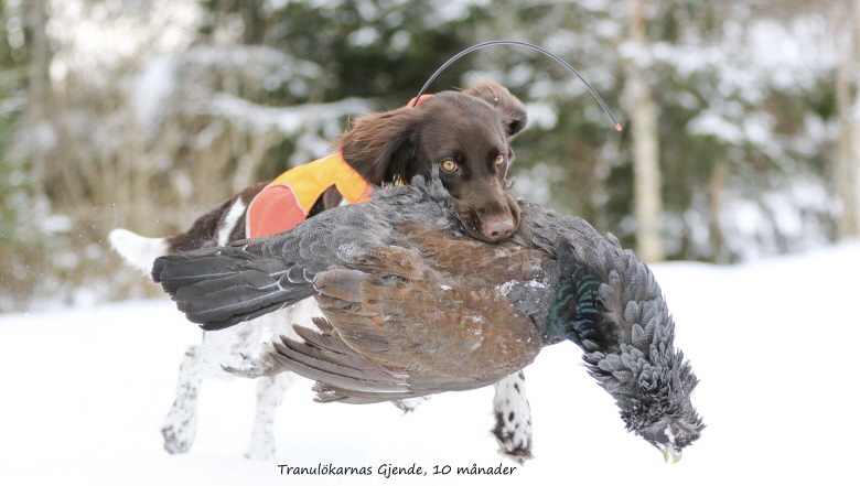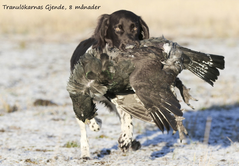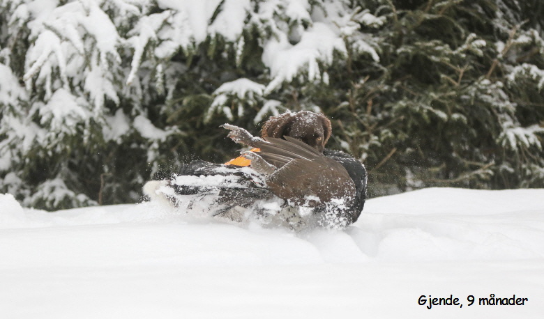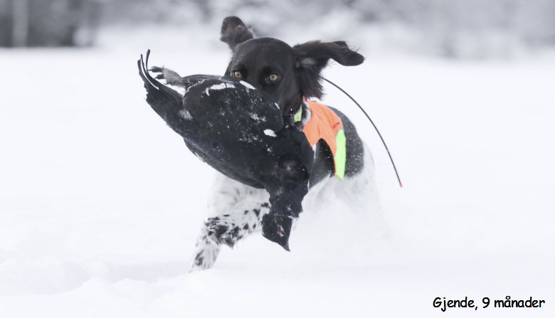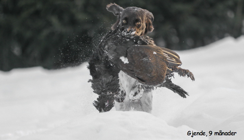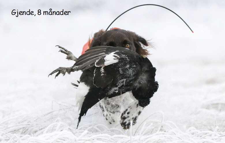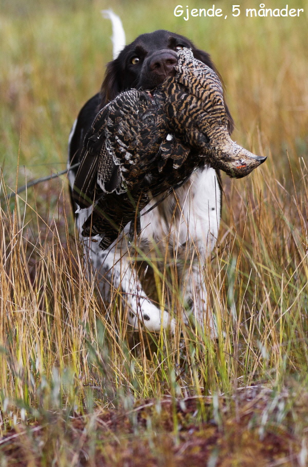 Efter 3 veckors jakt söker och apporterar Gjende (snart 6 månader) redan som en stor jakthund. Nu saknas bara erfarenheter, men de kommer med varje jaktdag. En glädje att vara i skogen med hunden och se hennes utveckling.