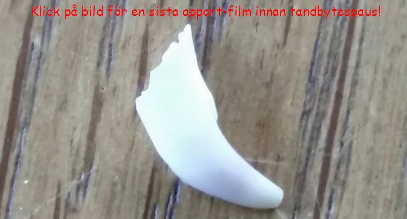 Nu är det dags för hundens tandbyte och jag ska pausera med apportträningen till alla nya tänder är på plats eller minst till alla gamla har ramlat ut. En liten test efter semester kunde jag inte låta bli. 80m rävsläp funkar lika bra som innan resan.