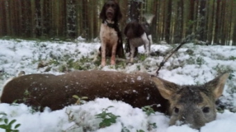 Som vanligt var Gjende och Antonia med på vaktjakt. Gjende har redan lärt sig att bete sig lugnt på pass. Resultatet är att jakten blir framgångsrik och hon fick i 7 månaders ålder vara med när det skötts ett rådjur. Antonia avfångade djuret, Gjende var med och lärde sig hur mamma gör. Värdefulla erfarenheter för en ung hund...