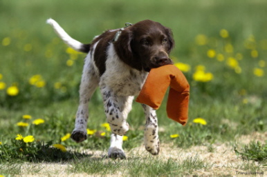 I ettårsåldern är det dags för äkta tunga räven om man är väl tränad. Hon kämpar, men kommer fram med den. Härligt!!!