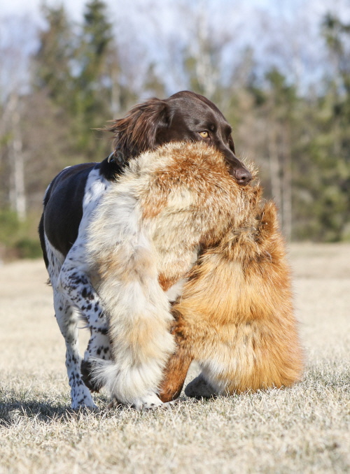 Redan vid 3 veckor börjar jag med präglingen. Jag präglar valparna på alla sorters vilt.